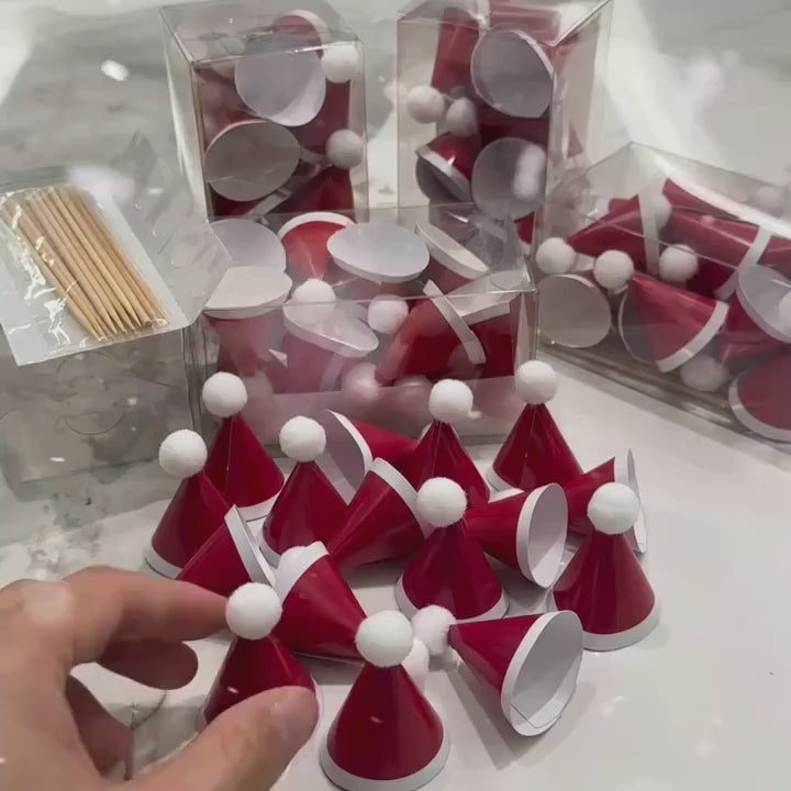Haz que tus postres brillen esta Navidad con estos encantadores mini gorros de Papá Noel.