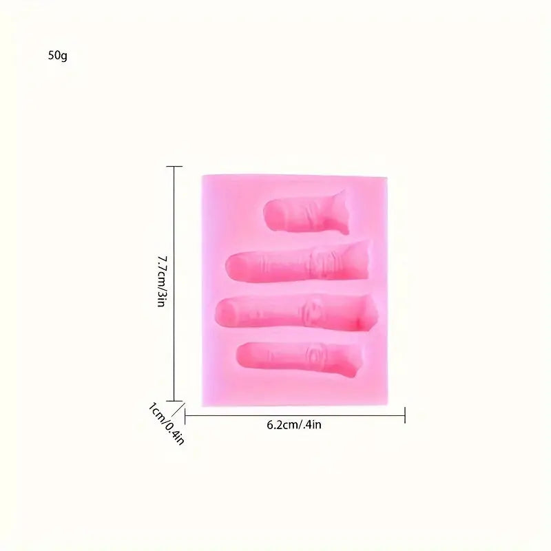 Cuenta con 4 cavidades que reproducen con detalle la textura y forma de dedos. Tienen una medida aprox. de 5cms, 4 cms y 3 cms