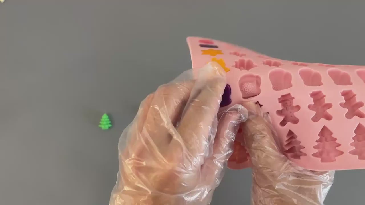 Transforma tus creaciones navideñas con este molde de silicona premium que ofrece 42 cavidades con 7 diseños festivos clásicos: Santa, regalos, copos de nieve, campanas, guantes, muñecos de jengibre y árboles.
