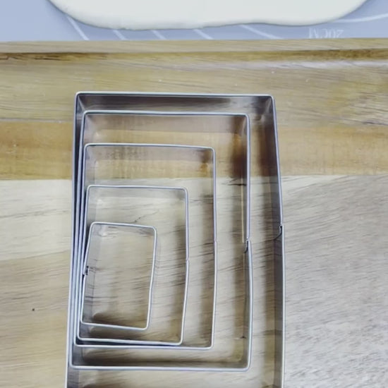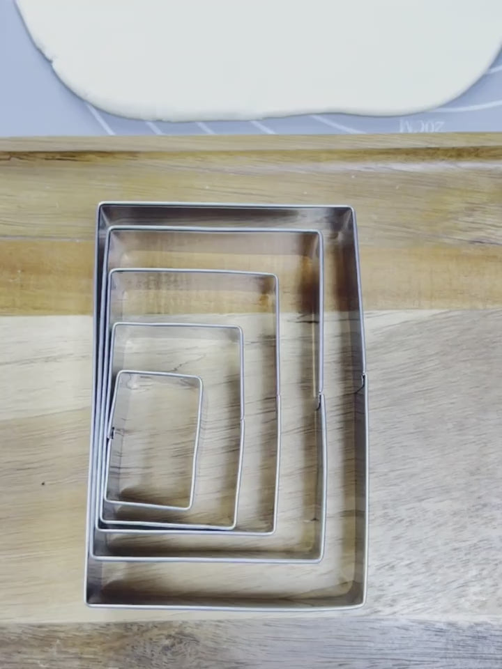 Logra galletas, brownies y decoraciones de fondant con bordes rectos y definidos gracias a este completo set de cortadores rectangulares.